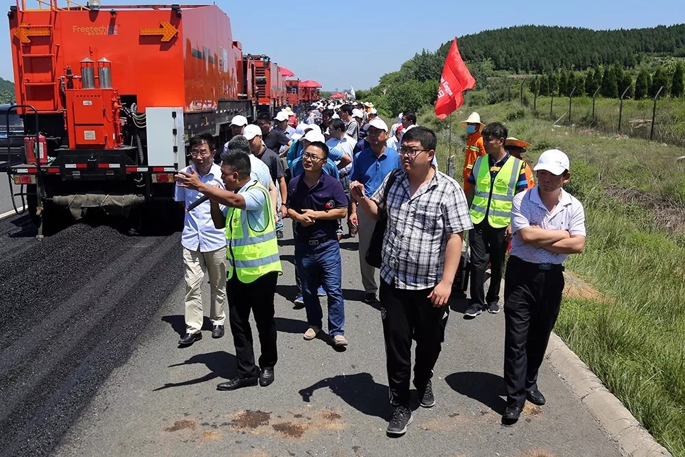 6月28日,由濟南金曰公路工程有限公司組織承辦的濟南公路學會就地熱再生技術交流及現場觀摩會在平陰舉行。山東公路學會副秘書長劉成海、濟南市公路管理局副局長任順祥、濟南城市建設集團副總經理安玉坤等領導同志,及省內20多家公路學會、設計院相關負責人參加活動。就施工工藝進行介紹交流后,與會人員到金曰承建的濟菏高速公路維修工程WX-1標段,現場觀摩了就地熱再生技術的施工情況。