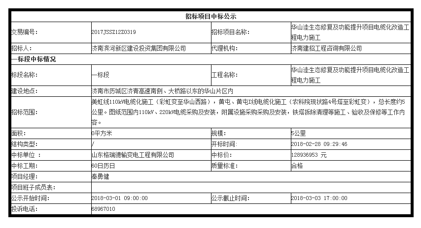 華山洼生態修復及功能提升項目電纜化改造工程中標公示