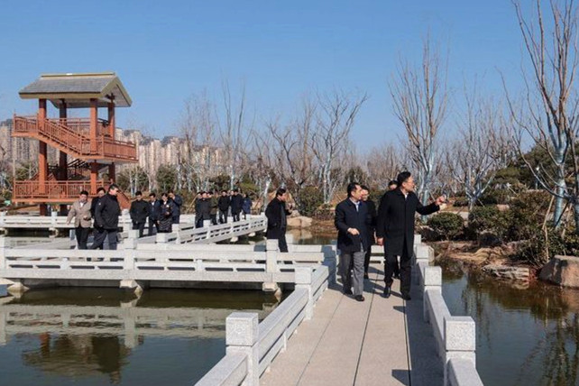 徐群一行首先來到華山歷史文化生態(tài)濕地公園,聽取工作人員介紹了項目的整體規(guī)劃和建設(shè)情況,并實地察看了公園試驗段和園林一期A區(qū),參觀過程中,徐群副市長對效果初顯的900畝山水園林景觀表示了肯定,并對項目未來整體效果表示期待。
