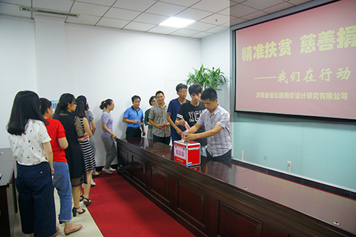 為全面踐行習(xí)近平新時代中國特色社會主義思想,深入貫徹落實(shí)習(xí)近平總書記“精準(zhǔn)扶貧、精準(zhǔn)脫貧”要求,弘揚(yáng)中華民族扶貧濟(jì)困的傳統(tǒng)美德,鼓勵干部職工積極投身慈善事業(yè),根據(jù)集團(tuán)《關(guān)于開展2018年“精準(zhǔn)扶貧慈善捐款”活動實(shí)施方案》的要求,6月15日下午,濟(jì)南金衢公路勘察設(shè)計研究有限公司組織全體黨員干部群眾在第一會議室開展“精準(zhǔn)扶貧慈善捐款”活動。