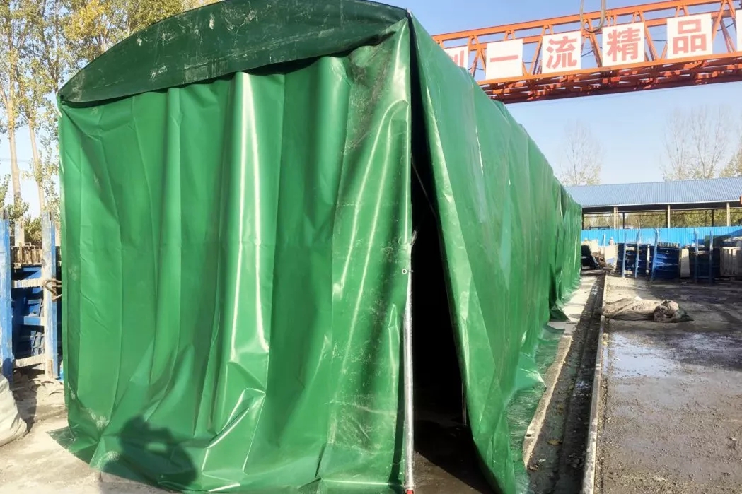 為克服低溫影響,項目預制梁板冬季養生主要采用暖棚蒸汽養生方法。利用鋼筋或鍍鋅管搭設養生暖棚,暖棚用塑料布密封,外面再覆蓋厚篷布,使厚棚布和梁板之間有空隙,確保梁板各部位能夠均勻保溫保濕。同時,現場安排專人負責,定期測量大棚內外溫度,確保蒸汽養生工作平穩順利進行。