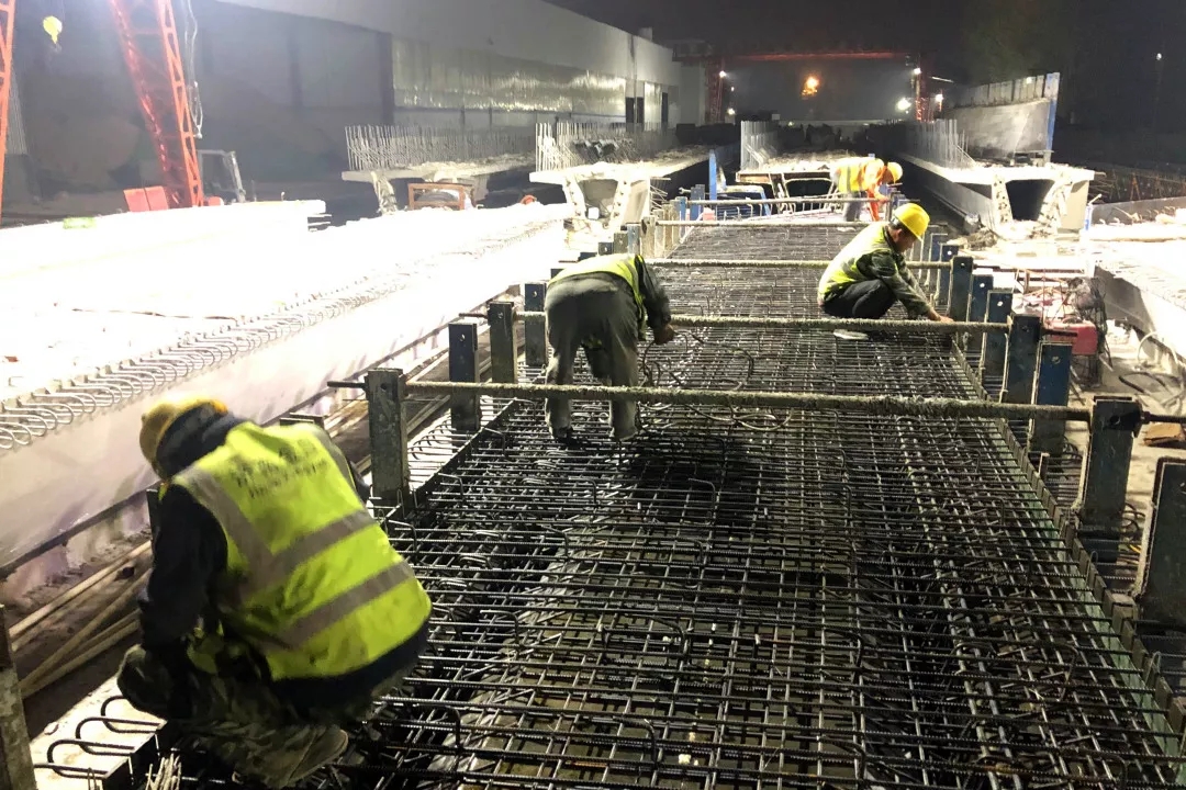 為保證梁板預制工作的順利進行,使混凝土的出機溫度和入模溫度滿足規定要求,項目合理統籌時間,夜晚突擊進行鋼筋綁扎、模板安裝等工作,將混凝土澆筑時間調整到氣溫相對較高的中午,既保證了混凝土澆筑環節的質量管控,也滿足了施工進度要求。