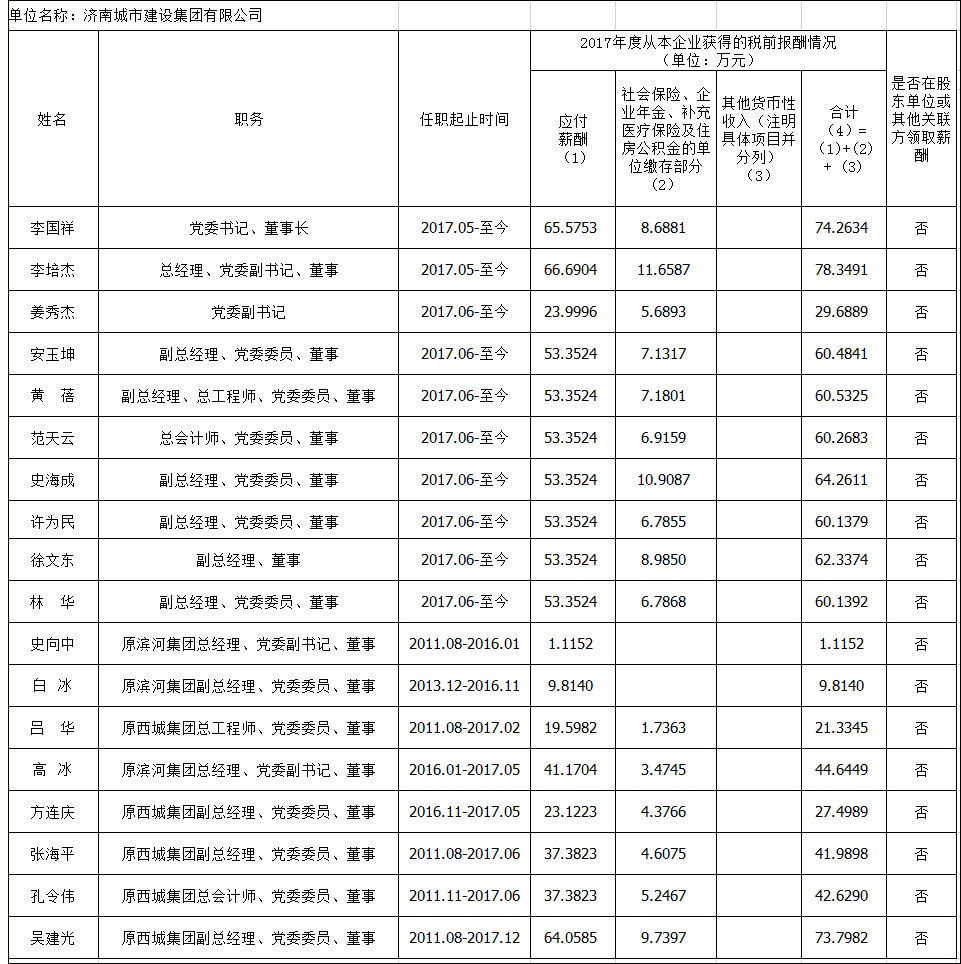 2017年度企業負責人薪酬情況公示