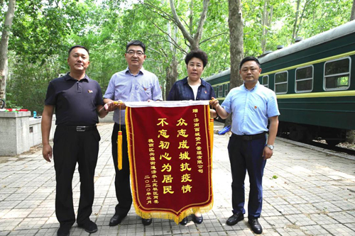 為感謝資產公司在疫情防控工作中對濟水上苑社區的大力幫助,社區書記葛榮劍向黨總支書記陳向勤贈送了錦旗。這面寫著“眾志成城抗疫情、不忘初心為居民”的錦旗,鞭策資產公司繼續踐行為民服務、守護國有資產的工作宗旨。
