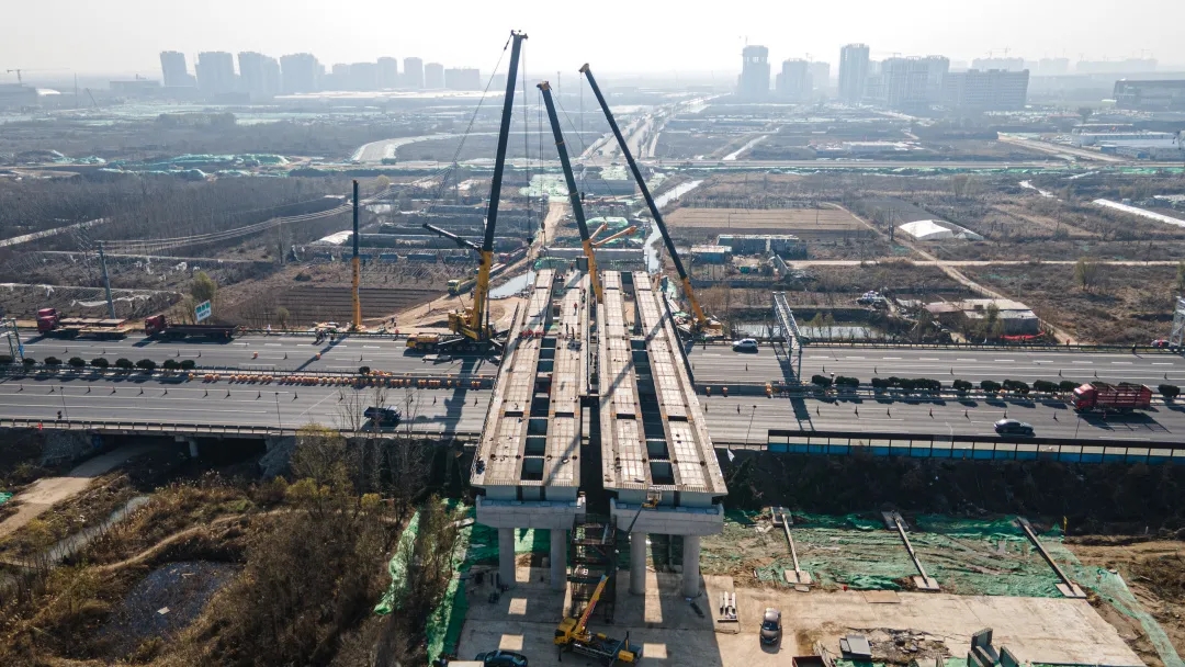 11月25日,歷時8小時施工作業,由建設集團受委托建設,集團所屬濟南城建集團有限公司第四分公司負責施工建設的濟南新舊動能轉換起步區智慧物流園區二期工程一標段西環路跨線橋鋼箱梁吊裝完成,順利跨越青銀高速。