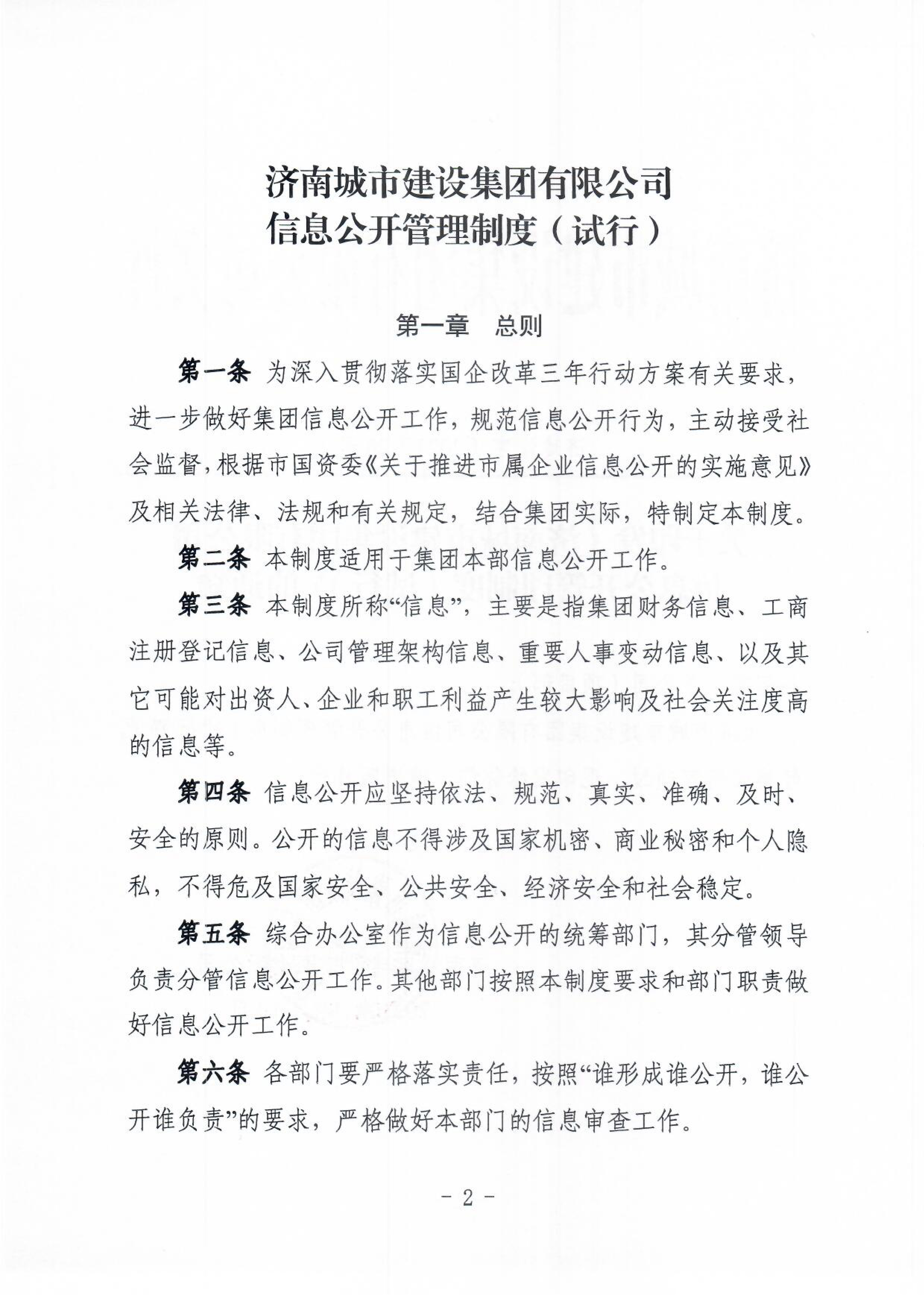 關于印發《濟南城市建設集團有限公司信息公開管理制度(試行)》的通知