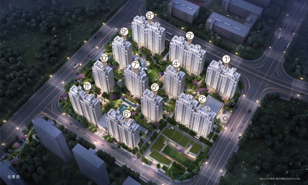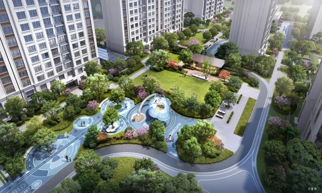 小區園林景觀規劃兩軸一庭五園的設計,約46.9㎡戶均景觀面積和約1600㎡中庭景觀,涵蓋約100㎡浮光會客廳及草坪劇場,約500㎡全齡段兒童樂園,打造高端園林社區。