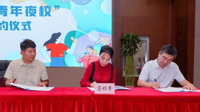 許洪波、任立先為建設(shè)集團青年之家揭牌;團市委組織部相關(guān)負(fù)責(zé)同志、建設(shè)資產(chǎn)公司負(fù)責(zé)同志、青年夜校建設(shè)集團校區(qū)負(fù)責(zé)同志共同簽訂《濟南團市委“青年之家·青年夜校”項目運營協(xié)議》;與會領(lǐng)導(dǎo)為“青年之家·青年夜校”6名授課教師代表發(fā)放聘書。