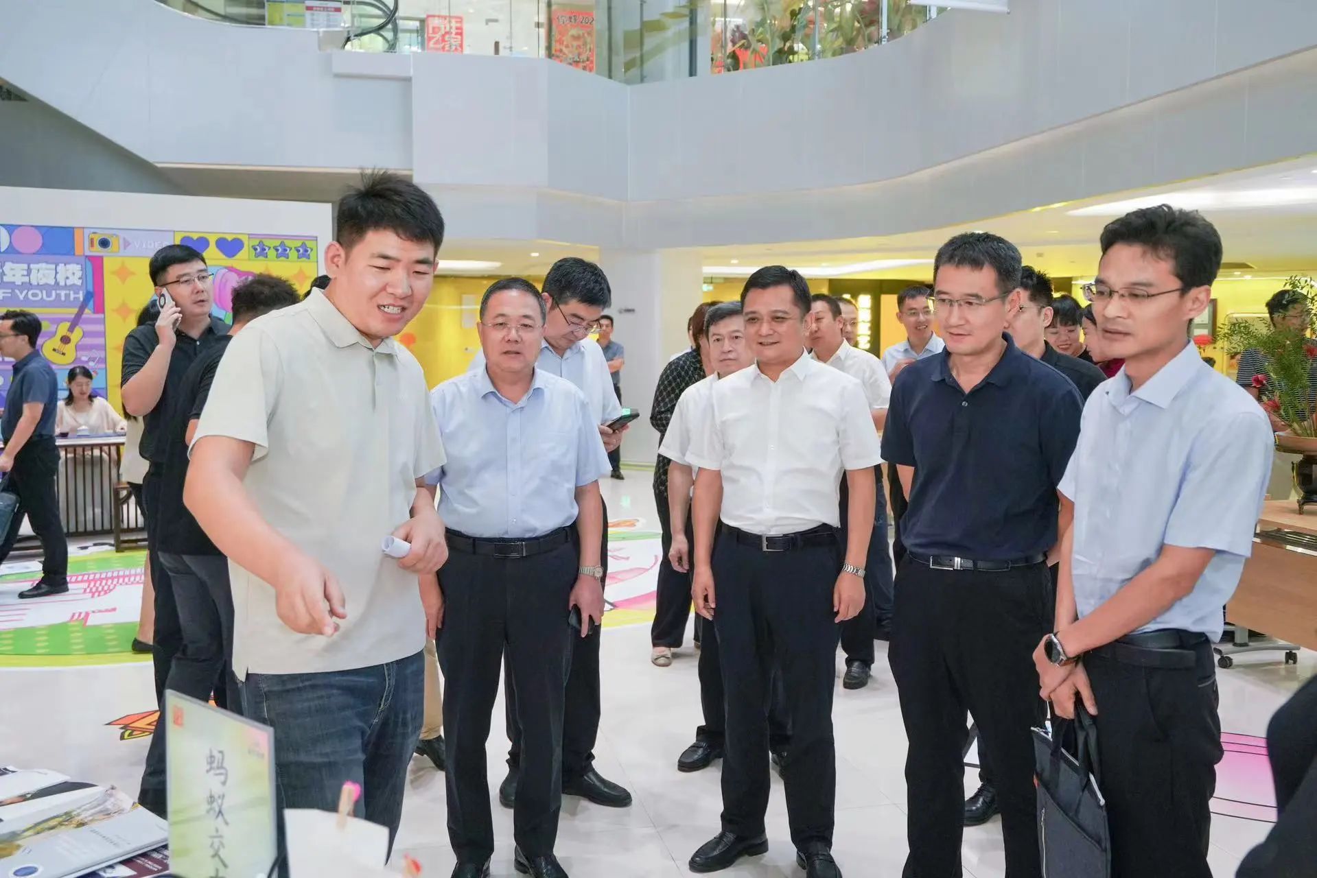 會前,與會領(lǐng)導(dǎo)參觀了集團展廳、集團青年夜校教學(xué)場地及夜校市集攤位。