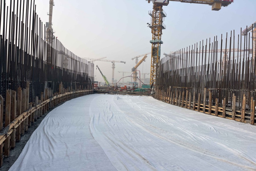 機場T2航站樓工程8號下穿通道首段底板澆筑完成