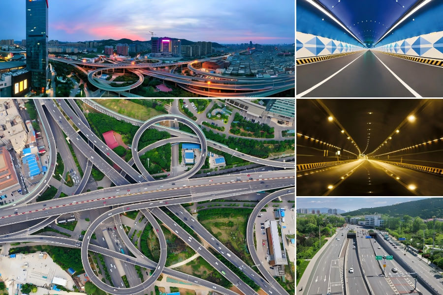 施工過程中,城建集團公司創新研發了城市復雜環境下淺埋超小凈距隧道修建技術、涂覆抗車轍彩色防滑路面施工新技術,建立了準靜力影響線法橋梁結構安全快速診斷與評定體系。其中,4項創新成果列入省部級科技計劃項目,5項技術達國際先進水平,2項技術達國際領先水平。